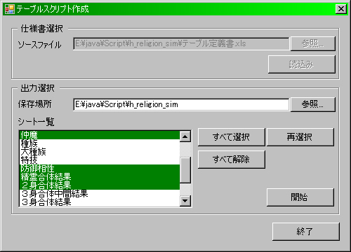 自分で作ったテーブルレイアウトをスクリプトにするプログラム。